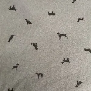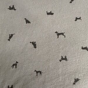Light gray body with black silhouette dog ditsy pattern.