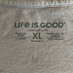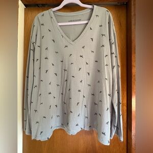 Life Is Good Light Gray V-Neck Shirt Dog Prints