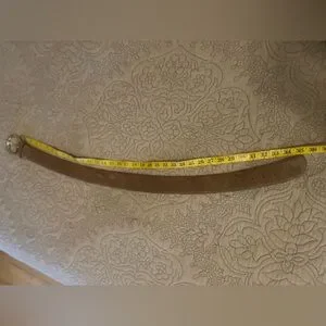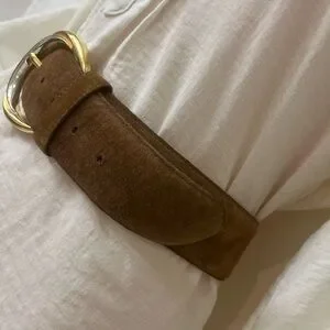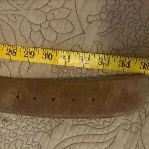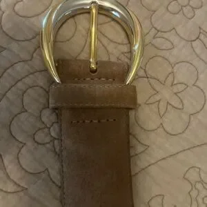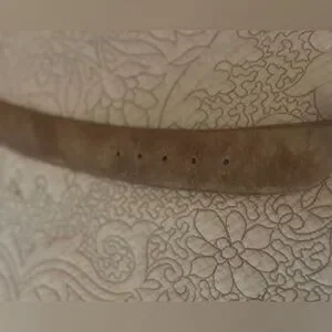 In 2025 we are bringing back the big, wide belts of the 90’s and early 2000’s! If we can find a vintage suede one, even better! This is a beautiful light brown, tan genuine sueded pigskin belt with a unique gold and silver buckle. Very nice condition, no harsh signs of wear.