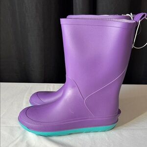 Cat & Jack Purple Rain Boots with Teal Soles Girls Size 4