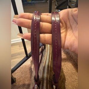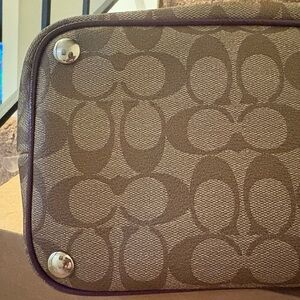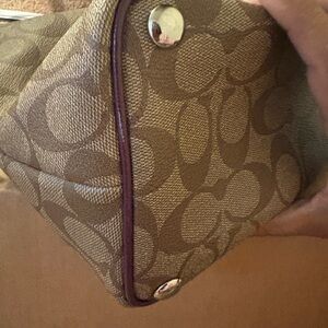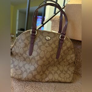 Coach Domed Satchel Handbag Style 24606 Beige w/Logo - Plum Trim & Interior