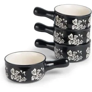The Soup Bowls is perfect for chili, beef stew, bouillon, seafood bisque, chowder, lobster bisque, shepherds pie, cheese soup, tortilla soup, and more. The handle design makes your cooking more convenient. The Soup Bowls are MICROWAVE SAFE (400 ℉/205 ℃), OVEN SAFE, FREEZER SAFE, DISHWASHER SAFE.