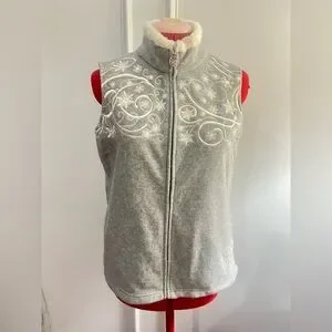 Croft & Barrow Gray Fleece Vest with Snowflake Embroidered Design small festive