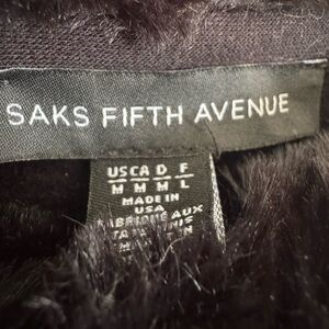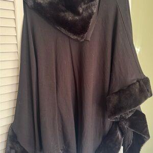 Saks Fifth Avenue Black Poncho with Faux Fur Trim