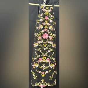 Alyce Paris Black Dress with Pink and Yellow Embroidery