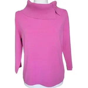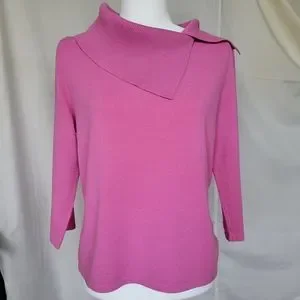 Pink Poodle Vintage Pink Knit Sweater Top Split Cowl Neckline 3/4 Sleeve Sz. L/M