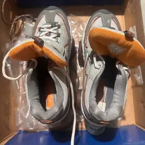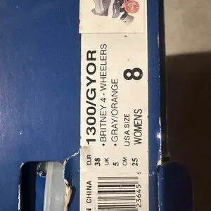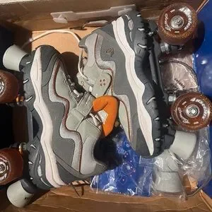 Stylish Britney 4-Wheelers roller skates in gray and orange. Perfect for a smooth ride. Gently used and still has the key tool and extra laces.