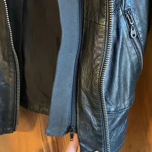 I only wore a few times and this jacket is in excellent used condition. No nicks in the leather.