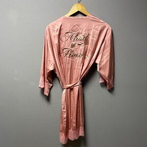 Elegant pink satin robe perfect for bridal parties. Soft and luxurious feel for ultimate comfort. “Maid of Honor”