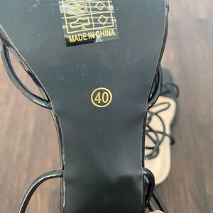 Black Glitter Iridescent Glam Square Open Toe Block Heel Lace Up Sandals US 9.5