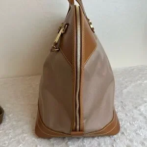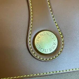 This is a MINT vintage Dooney and Bourke travel bag. Tan in color measures approximately 22" wide at center x 14" tall and center without handle. Comes with shoulder strap. Clean unused condition. No marks scratches or damage.