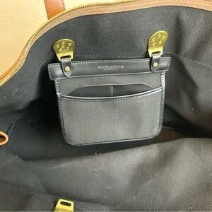 Vtg Dooney & Bourke Cabriolet Weekender Bag Tan Fabric Leather Shoulder Strap