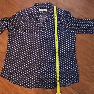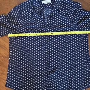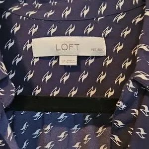 LOFT Navy and White Patterned Button Down Blouse Size LP