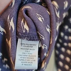 Chic navy blouse with white pattern. Versatile and stylish. Ideal for any wardrobe. Long sleeves, button down.