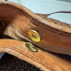 NEW Beautiful dark brown perforated woven leather tote. Handcrafted in India. Large tote measures 15”W at top, approx. 10”H, and 6-7”D.
