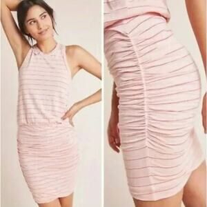 Anthropologie Sundry Tank Dress Womens Medium 2 Pink Stripe Ruched Racerback