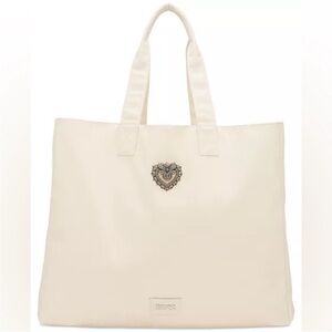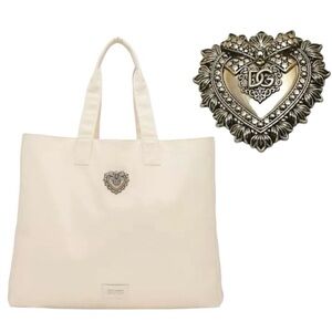 Dolce & Gabbana Devotion Cream Canvas Large Tote Bag Purse D&G Gold Heart Plaque