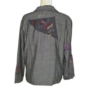 Vintage Units Embroidered Jacket Beaded Patchwork Boho Artsy Shirt Coat L