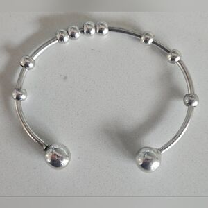 Elegant Italian Sterling Silver Cuff Charm Bracelet w/ Sterling Spacer Beads