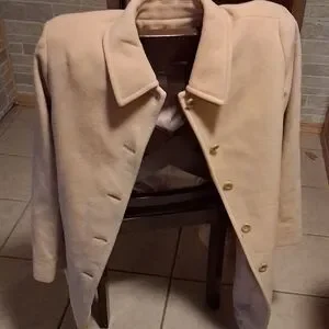 Stay warm and stylish with this elegant cream pea coat. Perfect for any occasion, this coat offers both comfort and sophistication.