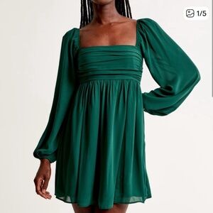 Flattering long-sleeve mini dress in our crinkle satin fabric, featuring a square neckline, ruching details along the bodice, back smocking.