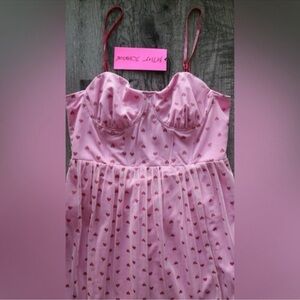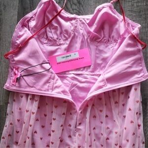Betsey Johnson Pink Glitter Heart Print Tulle Dress