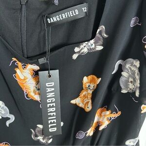 midi dress with cat print. Features a square neckline and short sleeves. NWT