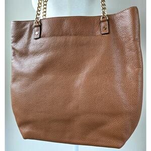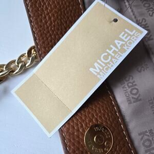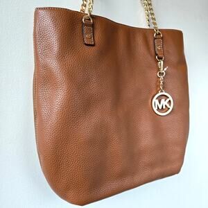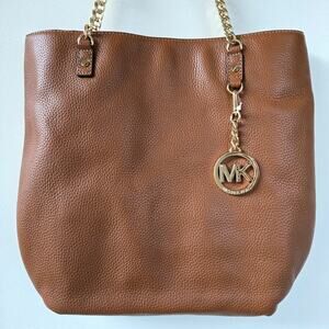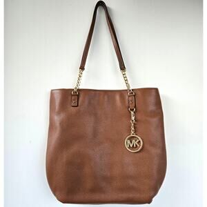 Michael Kors NEW Jet Set Pebbled Leather Mocha Brown Tan Tote Bag Gold Chain NWT