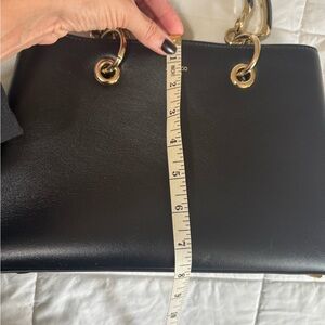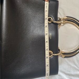 Chic black satchel with elegant gold hardware. Perfect for any occasion.
