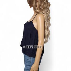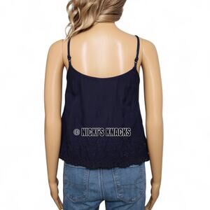 LC Lauren Conrad Navy Blue Boho Embroidered Eyelet Hem Crop Tank Top Size L