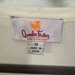 Soft cream knit top by Quacker Factory. Gorgeous pear and rhinestone details. Perfect for the holidays. Excellent condition! Size 1X.