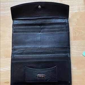Vintage Perlina Black Leather clutch Wallet with check book holder