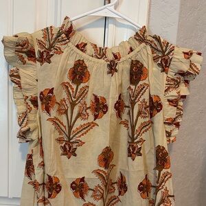Vibrant floral blouse with elastic neckline and ruffled cap sleeves . Ideal for casual wear. NWOT