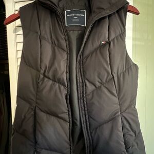 Chic black quilted down feather vest by Tommy Hilfiger. Ideal for layering in cooler weather. In great condition!