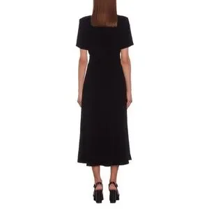 Silhouette: Cut with a fitted bodice/empire waist and a flared midi skirt (A-line/fit-and-flare), creating an effortlessly feminine shape.