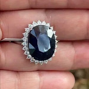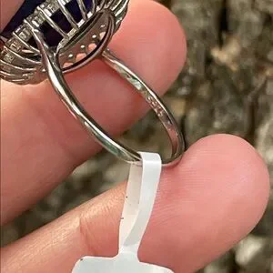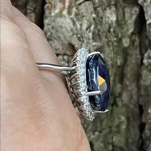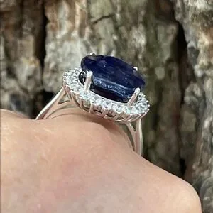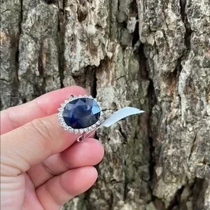 NWT Natural Sapphire 16X13mm CZ accents Statement Ring S10 Unheated/ Untreated