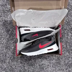 Brand new with tags. Men’s Nike Air Max Nuaxis. Size 10.5 M. Color is technically called Cave Stone/Bright Crimson. Smoke free and pet free home.