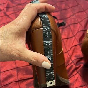 Stylish tan leather boots with buckle detail. Perfect for versatile wear.