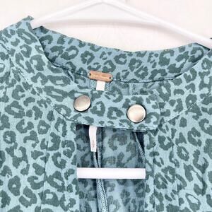 FREE PEOPLE Dress Women Size Small Mini Halter Neck Leopard Printed Tunic Blue Boho, Trendy, Chic, Stylish, Bold, Fashion, Playful, Unique, Boutique, Casual, Fierce, Statement, Modern, Vibrant, Fun