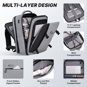 DEVPNR Expandable Laptop Backpack 41L USB Port Airline Approved Travel Bag 17.3"