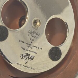 Wind-up mechanism on bottom plays “Deck the Halls.”