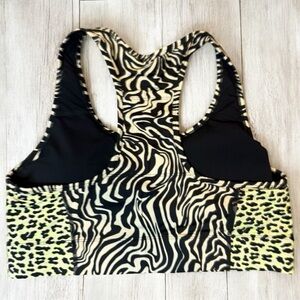 Fabletics On-The-Go Medium Impact Sports Bra Neon Cheetah Zebra Print size XL