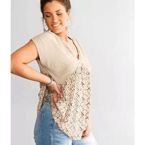 GIMMIKS BUCKLE boho top beige pink contrast women's medium NEW