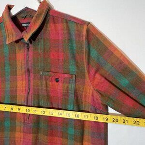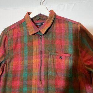 Toad & Co Women Bodie Plaid Flannel ShirtDress Long Sleeve Small Size Pockets Orange/ Green 1/4 zipper