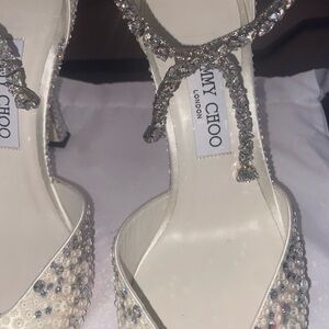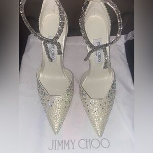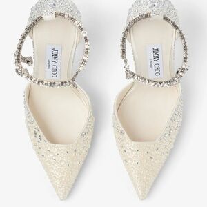 Stevie pump makes a statement with a crystal-embellished satin upper complemented by a crystal anklet. This pointed silhouette is designed with a modern square-cut vamp and a sculpted heel.