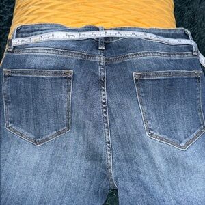 Great Boho Western Jean with embroidery in rust, copper, brown and tan. Tons of detail styled with a tank and wedges for summer or boots and a fluffy sweater for coffee in fall or winter. They are amazing with a fringed buckskin vest to take to NFR 🤩