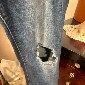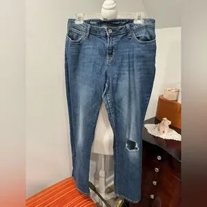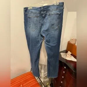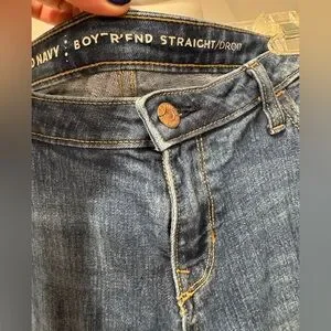 Stylish straight leg jeans by Old Navy. Perfect for casual wear. Comfortable and versatile.the jeans has some flaws. Check out the photos. Zipper and in between the thighs are worn