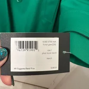 Chic and stylish trench coat by Kate Spade. Features a vibrant green hue. Ideal for adding a pop of color.
