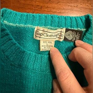 Gap Clothing Co Vintage Teal 100% Wool Crewneck Sweater