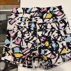 Stylish women's shorts featuring a vibrant abstract print. Perfect for adding a pop of color to your wardrobe.